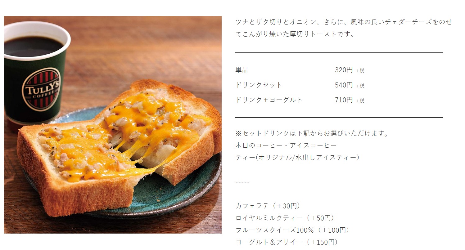 10位:厚切りトースト ツナチェダーメルト セット(タリーズ)