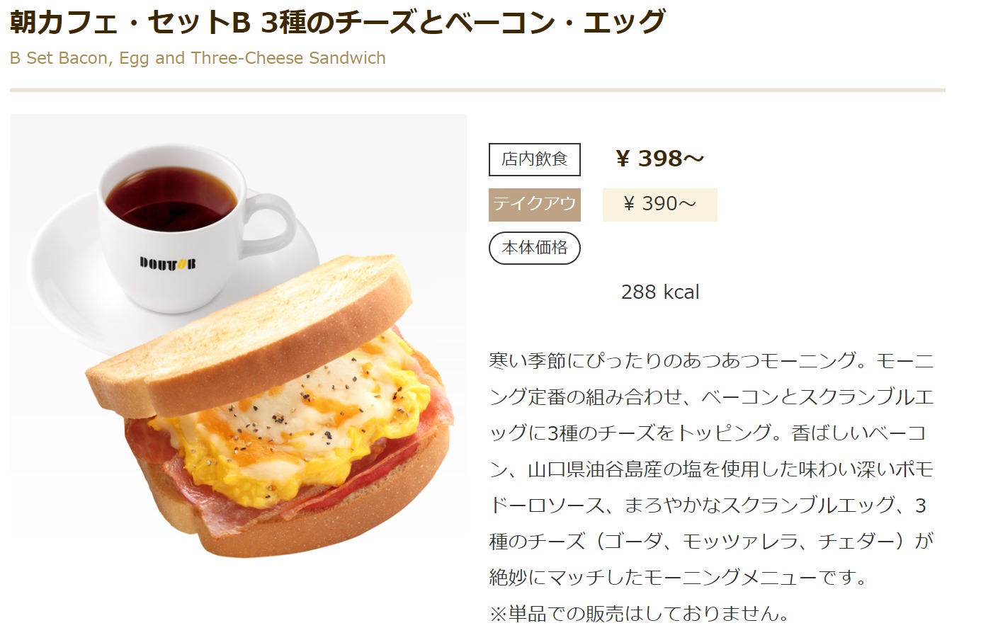 9位:三種のチーズとベーコンエッグサンド(ドトール)