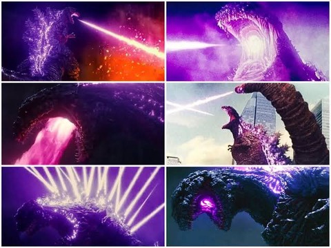 さらに第四形態は飛び回る戦闘機を落とすために背中と尻尾からも熱線が出せる様に進化(戦闘機は死角を飛ぶから背中からも熱線が出せる様に進化)