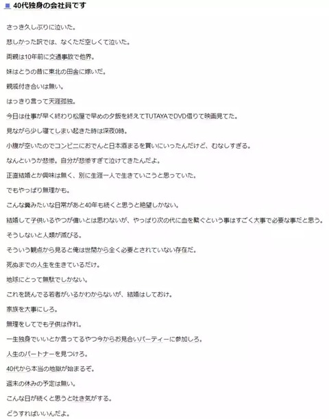 男は本当に孤独に弱いよな