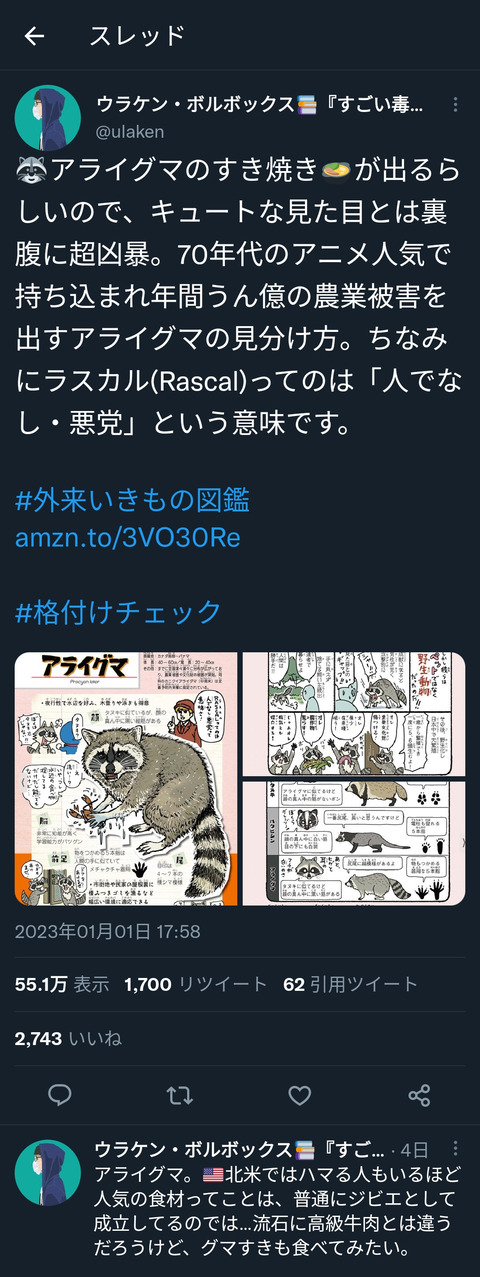 ラスカルのイメージだったのに害獣だったか
