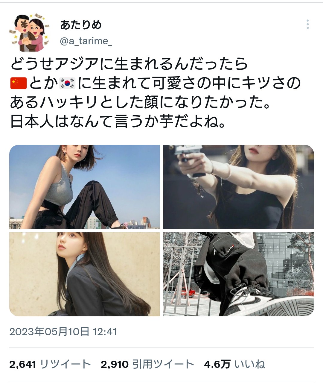 中韓関係なく「美人に生まれたかったぁ」だろ