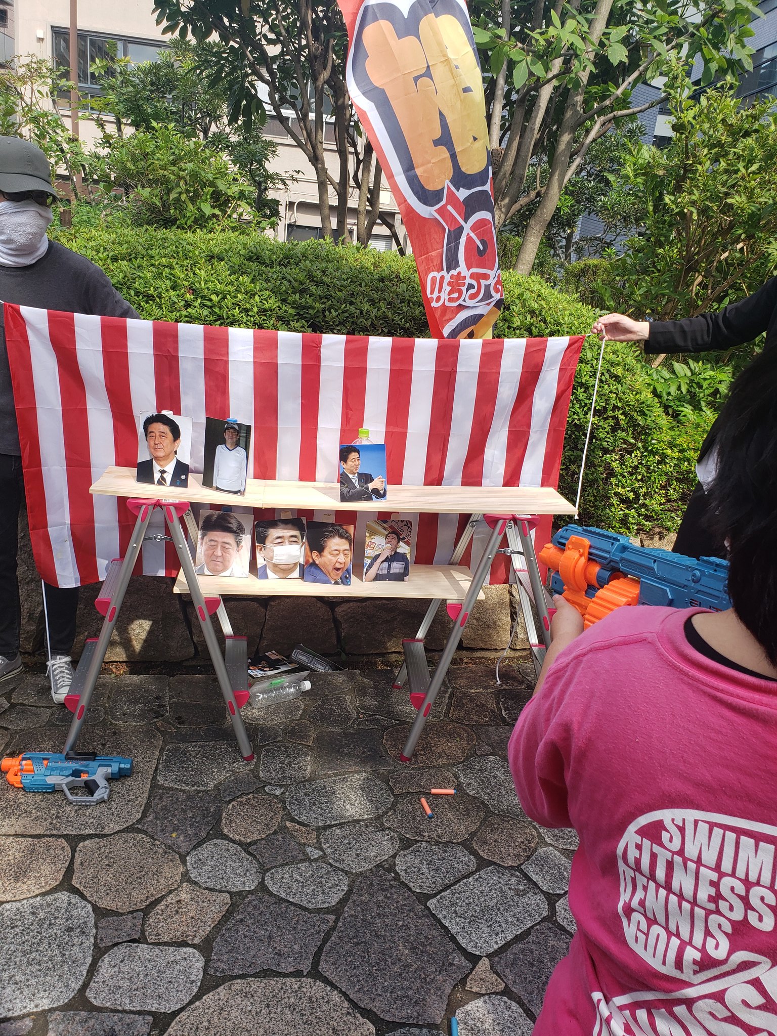 安倍氏銃撃現場の献花台近く、銃のようなものを持った若い男数人現れる