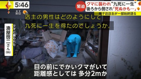【悲報】秋田の菓子屋店主、クマ被害の取材を受けた1時間後にクマに襲われる