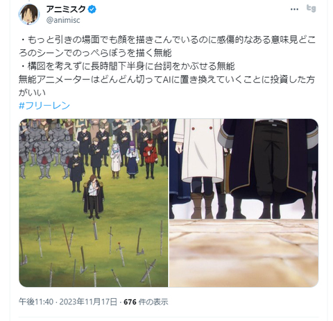 コマを止めて作画崩壊だと騒いできたんだからこれも叩かれて当然では?