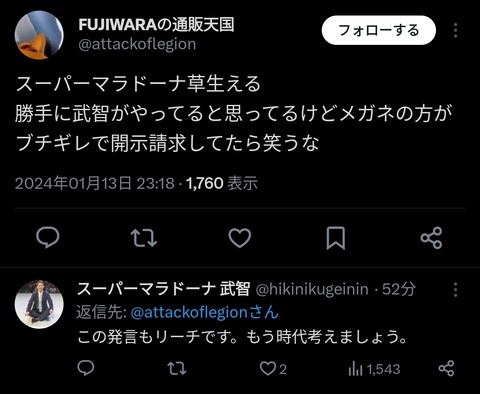 【朗報】スーマラ武智、酷すぎる誹謗中傷を食らい開示請求を宣言wwwwwwww
