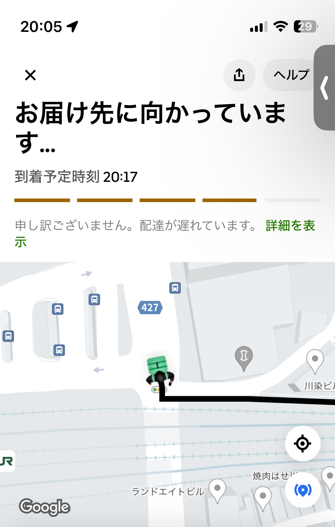 Uber、注文から1時間20分経過