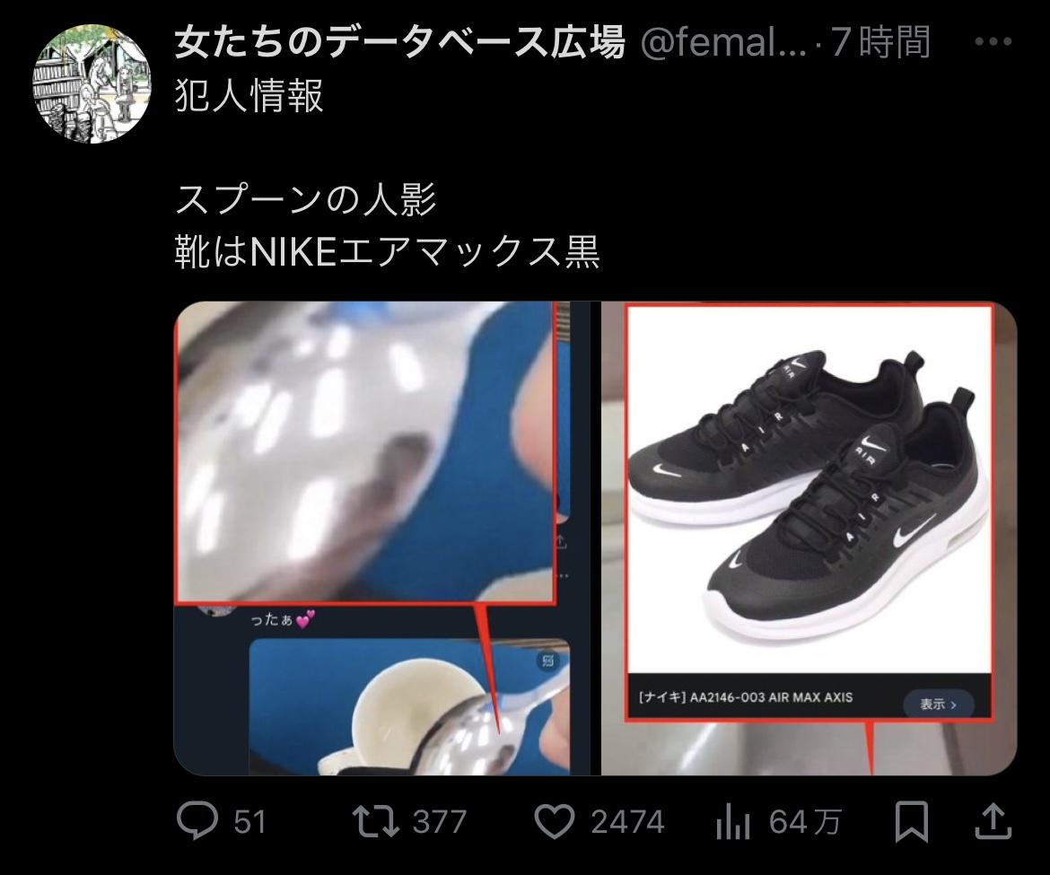 靴はナイキのスニーカーと既に特定されてる