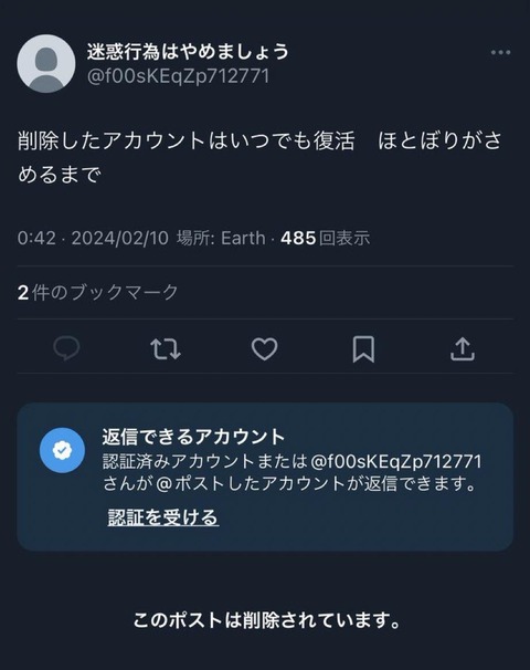 バレた後ID変えてみたり垢削除後に新しい垢作ったりしてるらしいぞやがみ