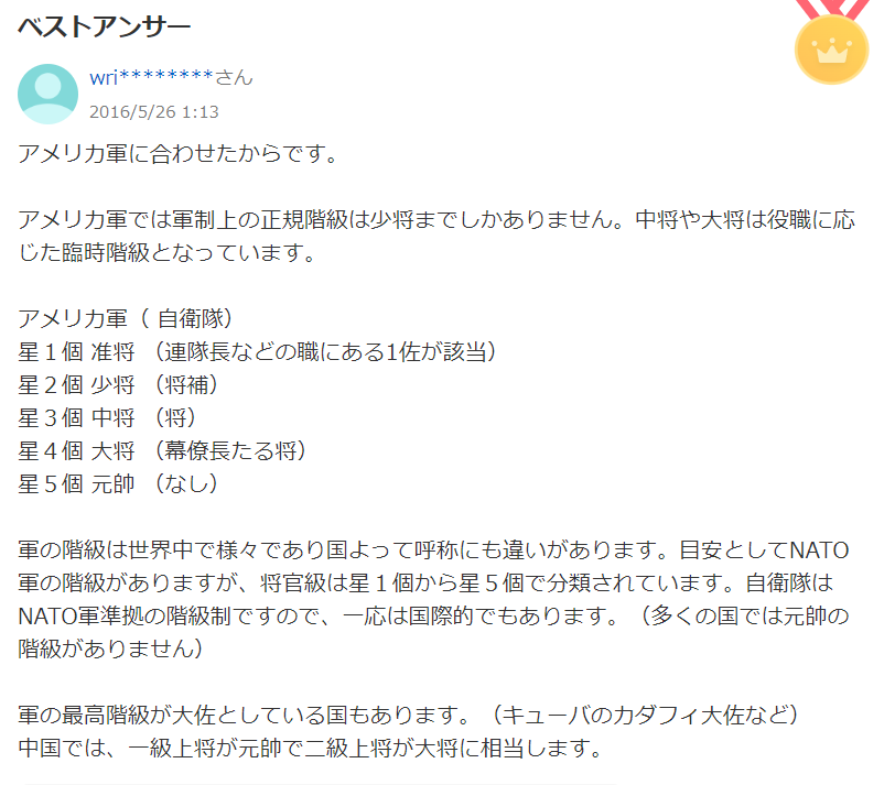多分やけど大体の軍隊は少将→中将→大将って階級でそいつらが☆1☆2☆3だけど