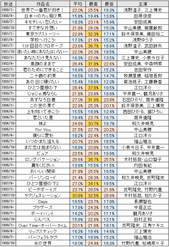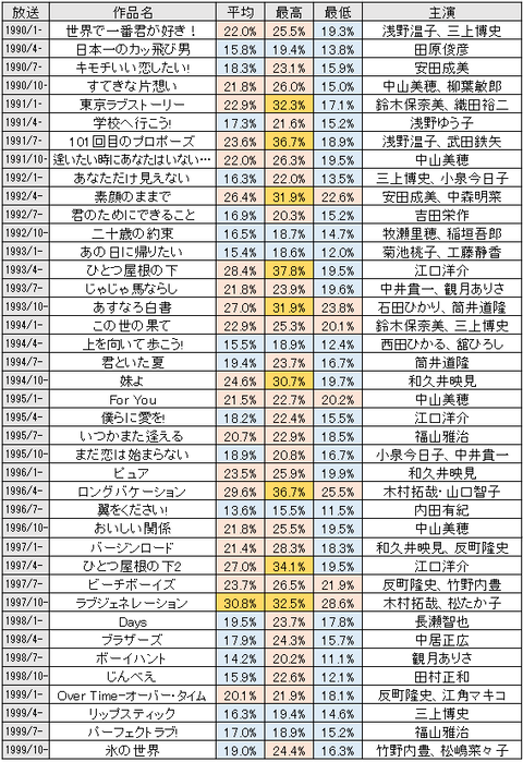 90年代から00前半まではドラマ、バラエティーと無双してた