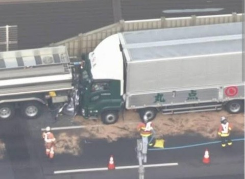 トラックは対向車線を走っていた軽乗用車に正面衝突したあと、そのまま道路脇のコンクリートの壁に軽乗用車を押しつぶすような形で数十メートル走行して止まったとみています。