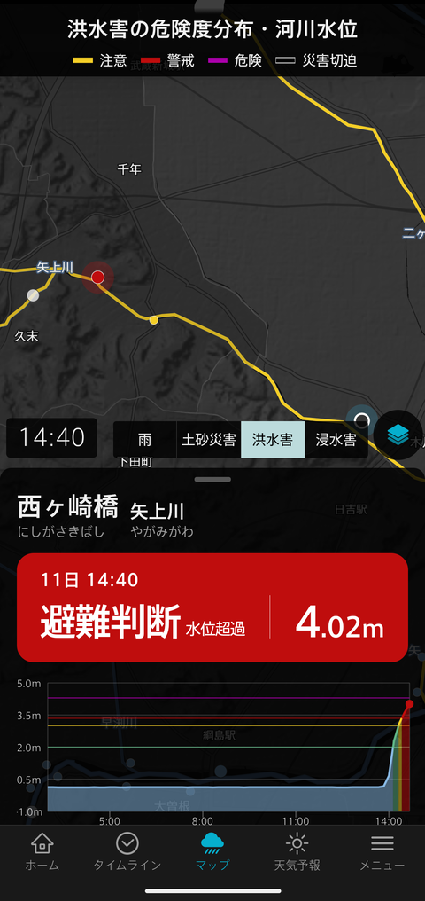妙正寺川も氾濫危険情報キタ━━━━━━━━(゚∀゚)━━━━━━━━!!!!