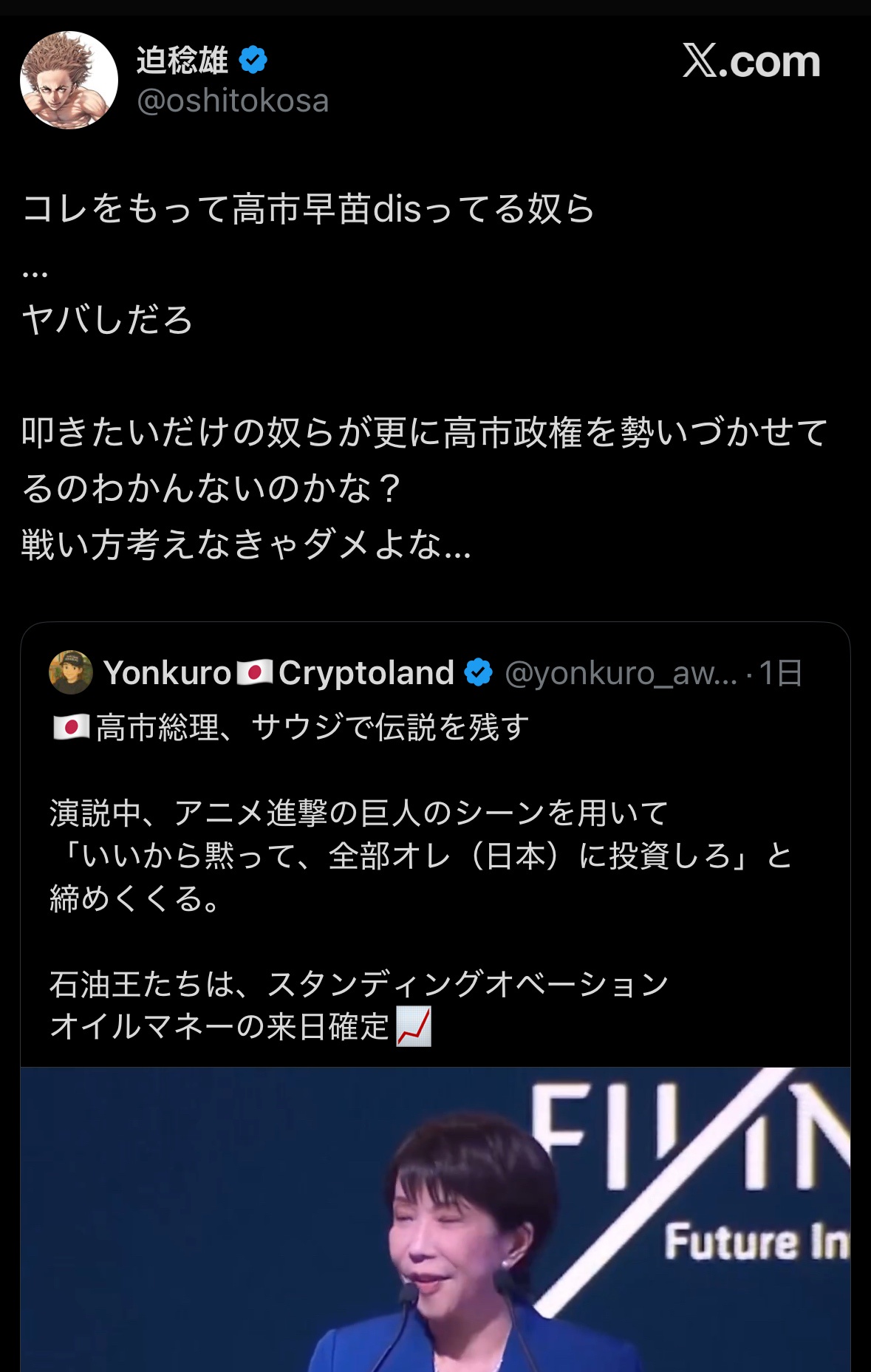 こいつが高市支持してるってことは高市はダメな奴って事だね