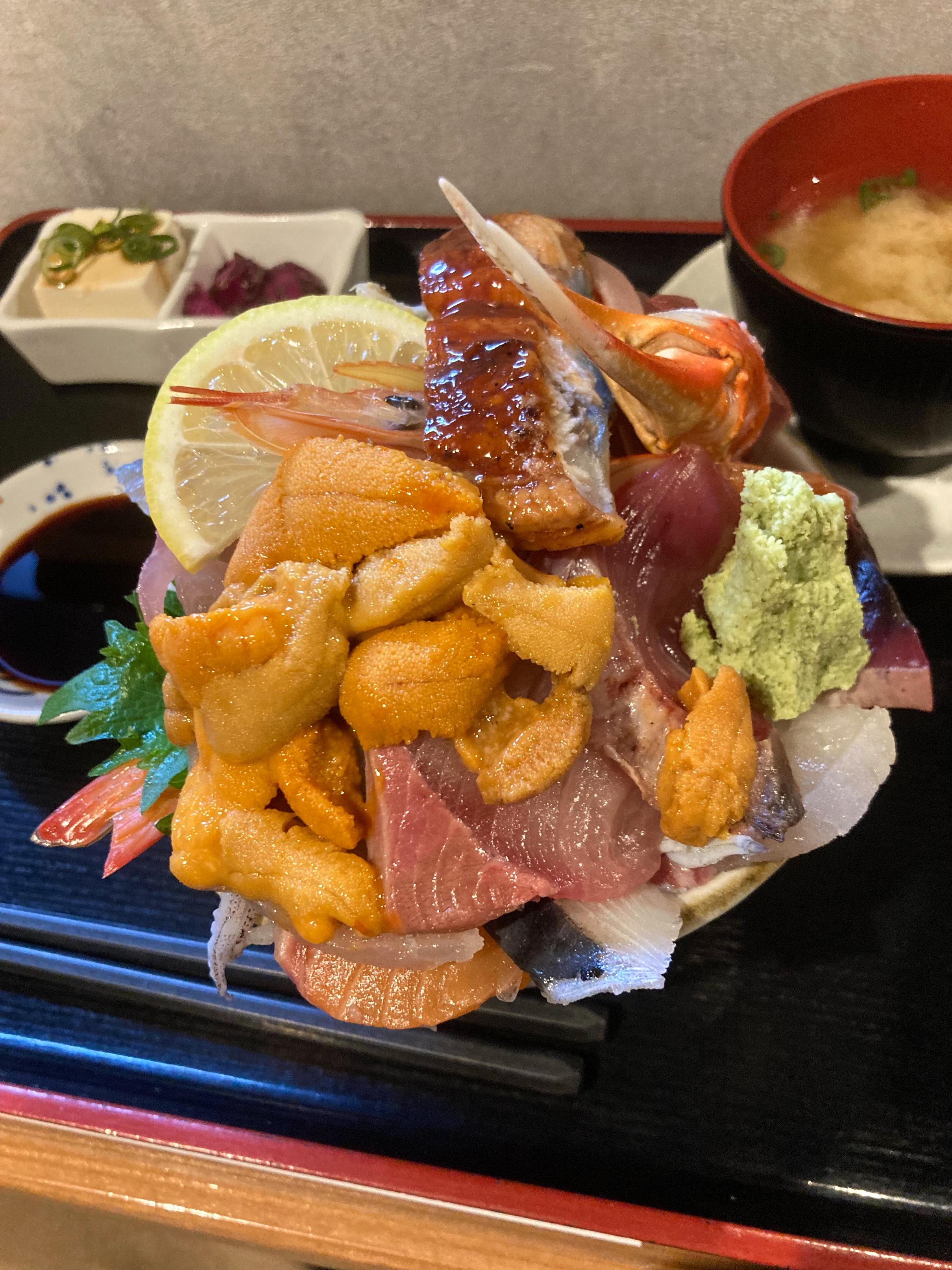 入ってる具材:白子、セル牡蠣🦪、雲丹、イクラ、あん肝、海老、蟹身、蟹味噌、ねぎとろ、玉子焼き