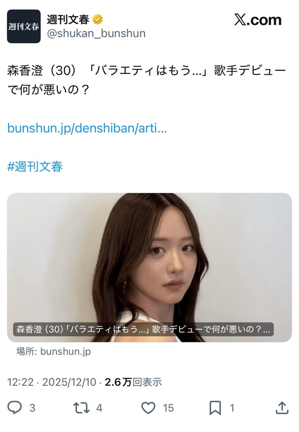 【速報】森香澄さん、歌手デビュー