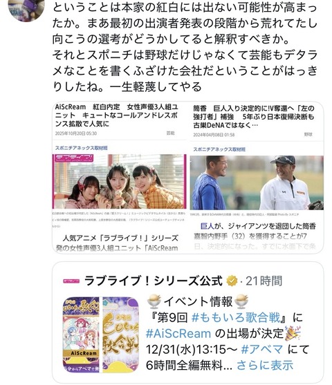 スポニチのせいだろ紅白消えたの