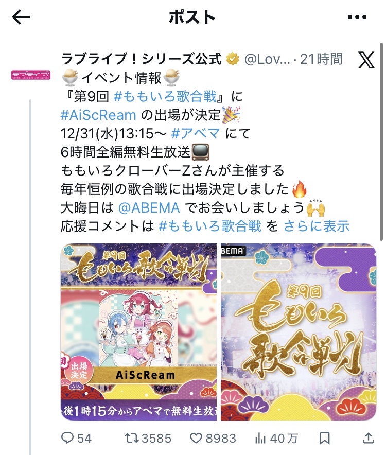 ラブライブ→オワコン