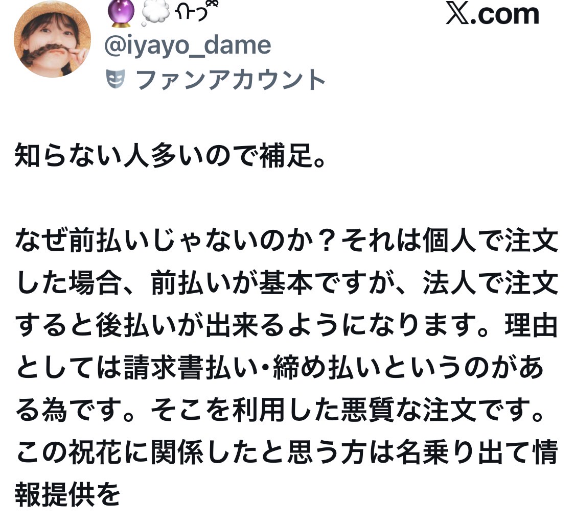 先払いだとオタクがカモられ、後払いだと花屋がカモられる地獄やね