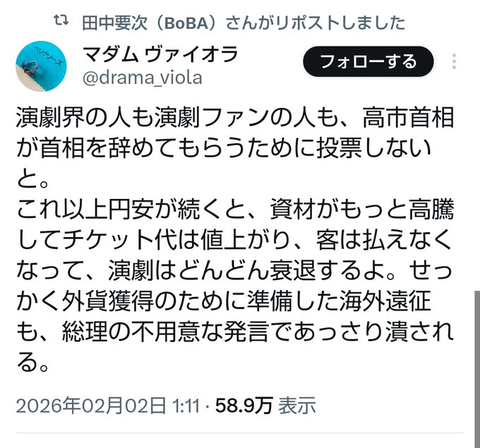 正直高市辞めようがなんだろうが円安は止まらんし主要政党みんな減税掲げてる時点で円安を止める気サラサラないのに高市降ろしたら円安止まるという謎ロジック不思議やわ